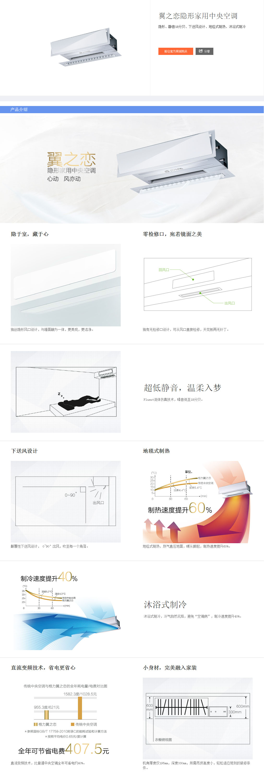 翼之恋隐形家用中央空调